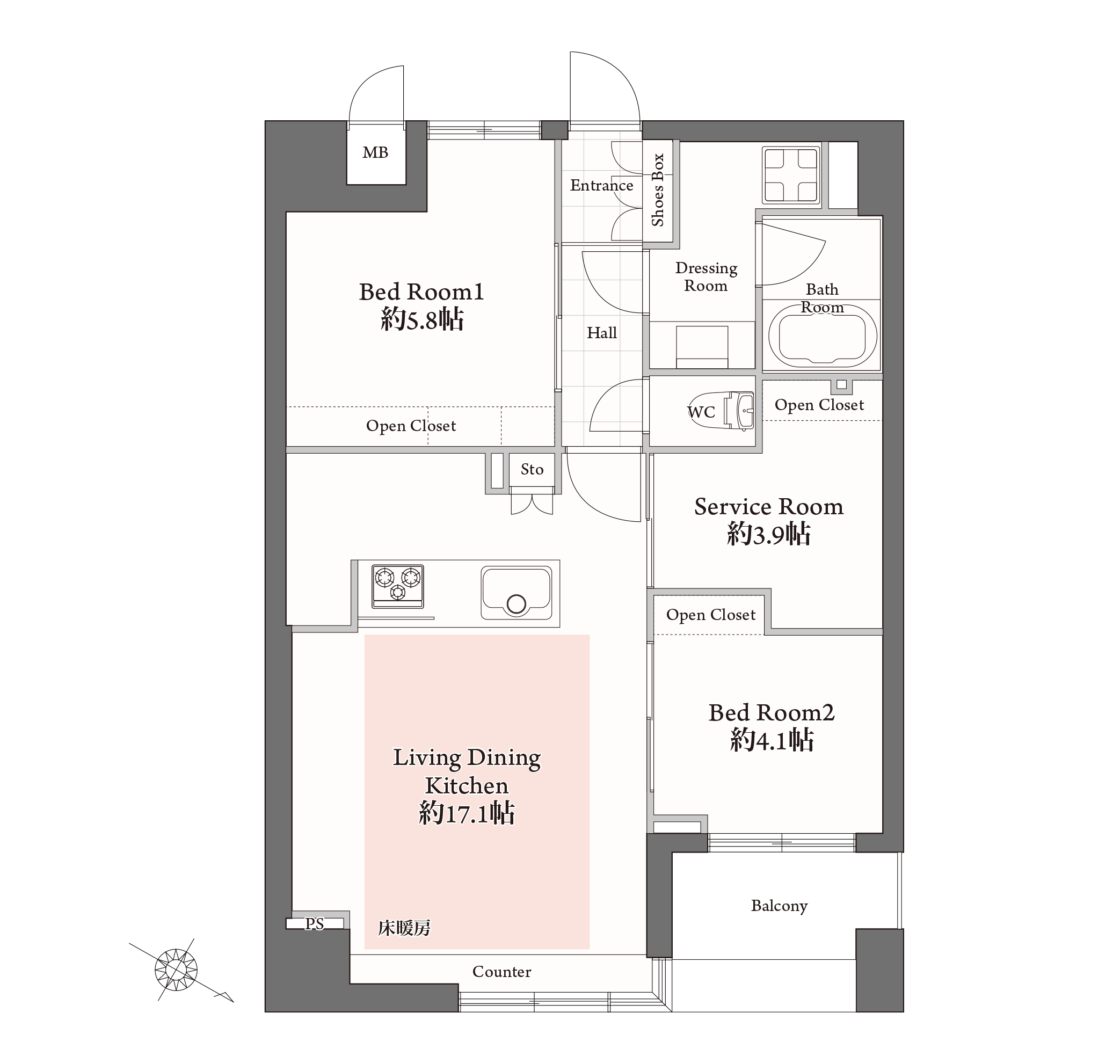 床暖房を搭載した、機能充実の2LDK+S
